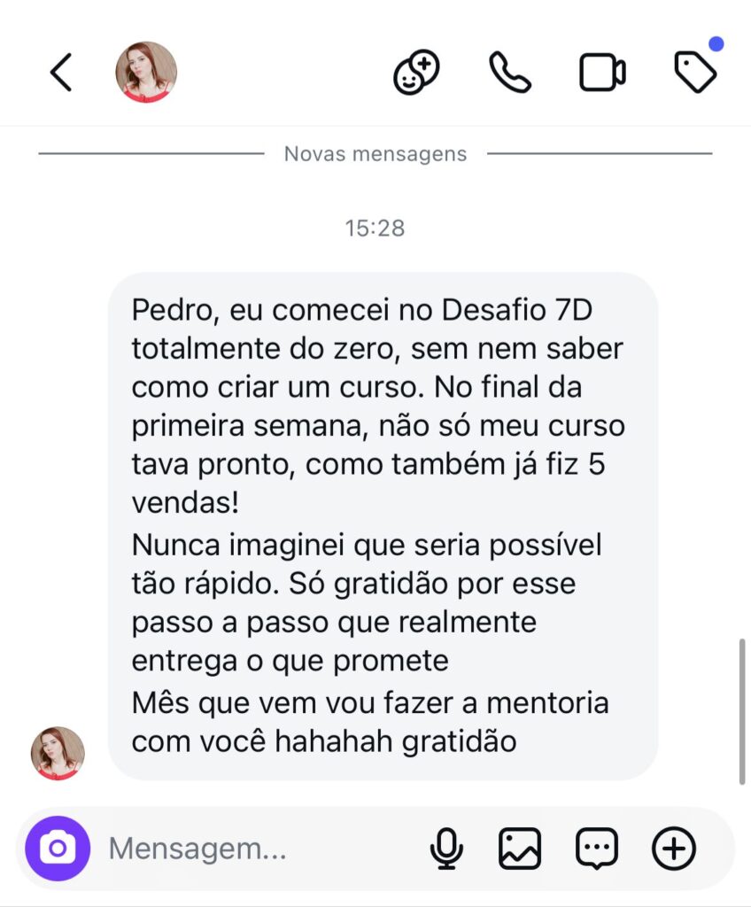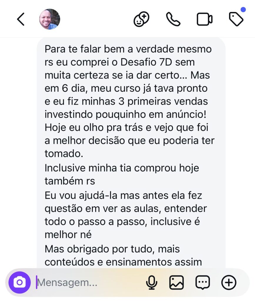 E é exatamente isso que o Desafio 7D vai te dar: Um passo a passo claro, testado, direto ao ponto — pra você criar, lançar e vender seu curso em 7 dias.
